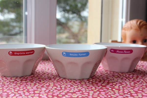 Pratique puisque les étiquettes autocollantes sont posées en quelques secondes pour les objets et conçues pour adhérer sur toutes les surfaces lisses, et donc tous les contenants alimentaires utilisés par l’enfant. Très résistantes elles sont adaptées pour passer au lave-vaisselle et au micro-ondes.