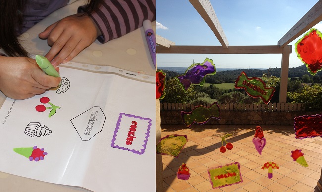 Cela a occupé 3 enfants pendant tout l’après midi, c’était parfait pour oublier la pluie. Comme vous pouvez le voir, on a tout bien fait décoré le tablier, fabriqué et dévoré les cookies, réalisé de magnifiques stickers. La seule chose c’est qu’il ne restait plus de cookies à mettre dans le pot car ils étaient très bons !! On a donc accroché les stickers sur la vitre et … le soleil est revenu !