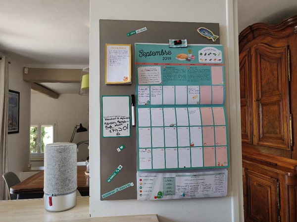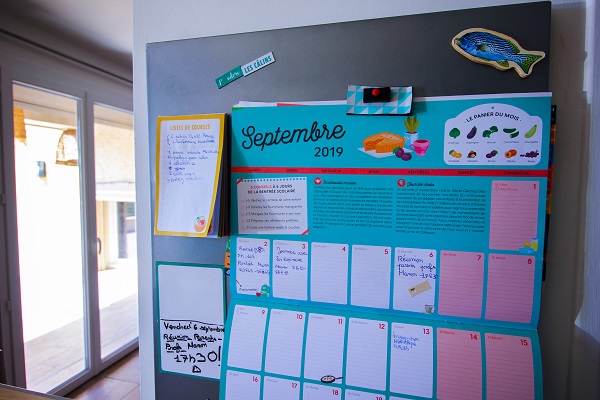 Le mieux est effectivement de le mettre à un endroit accessible de tous, il peut être accroché sur un mur ou comme nous l’avons dit aimanté sur le frigo (à condition d’avoir évidemment un espace suffisamment grand sur le frigo !).