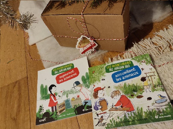 Deux livres aux éditions terre vivante : l’un qui regroupe 8 activités et observations à réaliser au jardin pour accueillir les animaux, l’autre 75 expériences pour explorer les sciences.