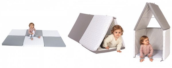 Enfin nous on craque pour le tapis de motricité XL de Candide qui offre une grande surface d’éveil et permet au travers d’un pliage astucieux de le transformer en cabane ou tunnel !