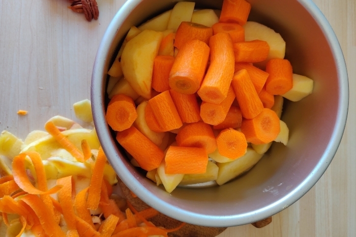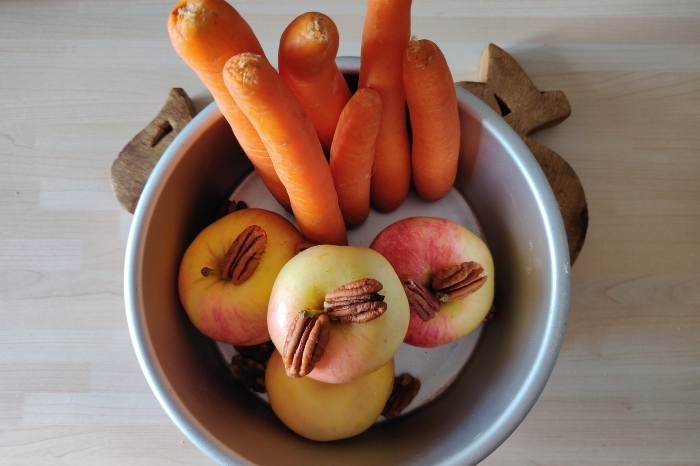 Nous vous proposons une recette gourmande et de saison avec des pommes et même des carottes ! Très facile elle peut constituer un joli moment de partage en famille