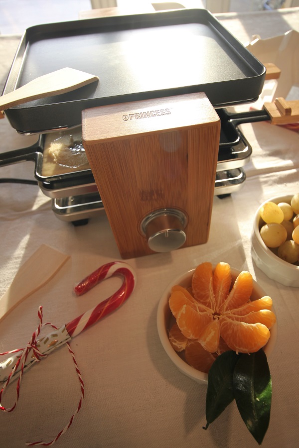 On a utilisé notre nouvel Appareil à raclette Pure 4 de Princess. Si vous voulez que l’on vous dise quelques mots sur cet appareil à Raclette. On l’a choisi car on aime le côté design du Bambou mais aussi son faible encombrement sur la table et dans le placard. Ce qui nous a séduit en premier c’est sa plaque sur le dessus qui dispose d’un côté lisse et d’un côté strié. Avec le côté strié on peut faire griller de la viande ou du bacon pour agrémenter sa raclette.