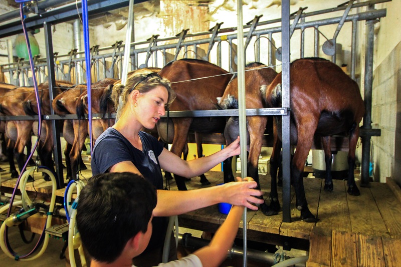 Claire emmène les petits et les grands chercher les chèvres directement dans les près, elle explique comment se passe la traite et met tout le monde à contribution puis fait déguster ses fromages ! Avez-vous déjà trait une chèvre ? Il faut y mettre de la passion mais il est vrai qu’elle est passionnée Claire !