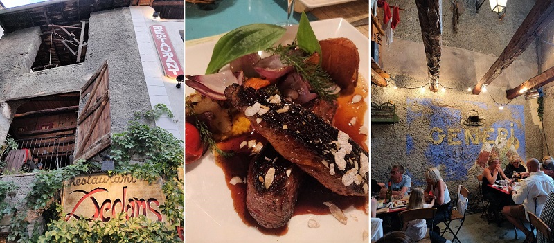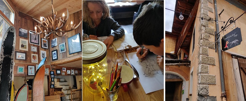 On trouve de bons restaurants. les commerçants jouent le jeu du circuit court en ne proposant que des produits du coin : fromage fermier, charcuterie, légumes. On valide à 100% cette démarche locavore et on craque pour les oreilles d’âne ( crêpes, Béchamel et épinards frais) et le sirop aux 7 plantes. de l’Italie toute proche les habitants ont hérité du goût pour les crêpes et la polenta.