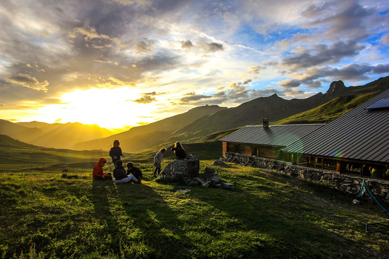 La soirée est aussi magique que le réveil : les marmottes qui sifflent, la montagne qui change de couleurs à chaque minute. Ne manquez pas notre article : dormir dans un refuge en famille.