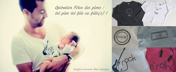 coordonner le papa et son ou ses enfants : 1 t-shirt pour papa et 1 pour le ou les enfants.
