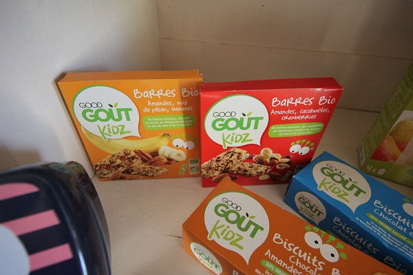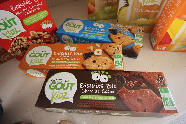 La gamme Good Goût Kidz propose aussi 3 sortes de biscuits bio : un sablé moelleux chocolat cacao, un chocolat amandes noisettes et un chocolat graines de sésame et tournesol.