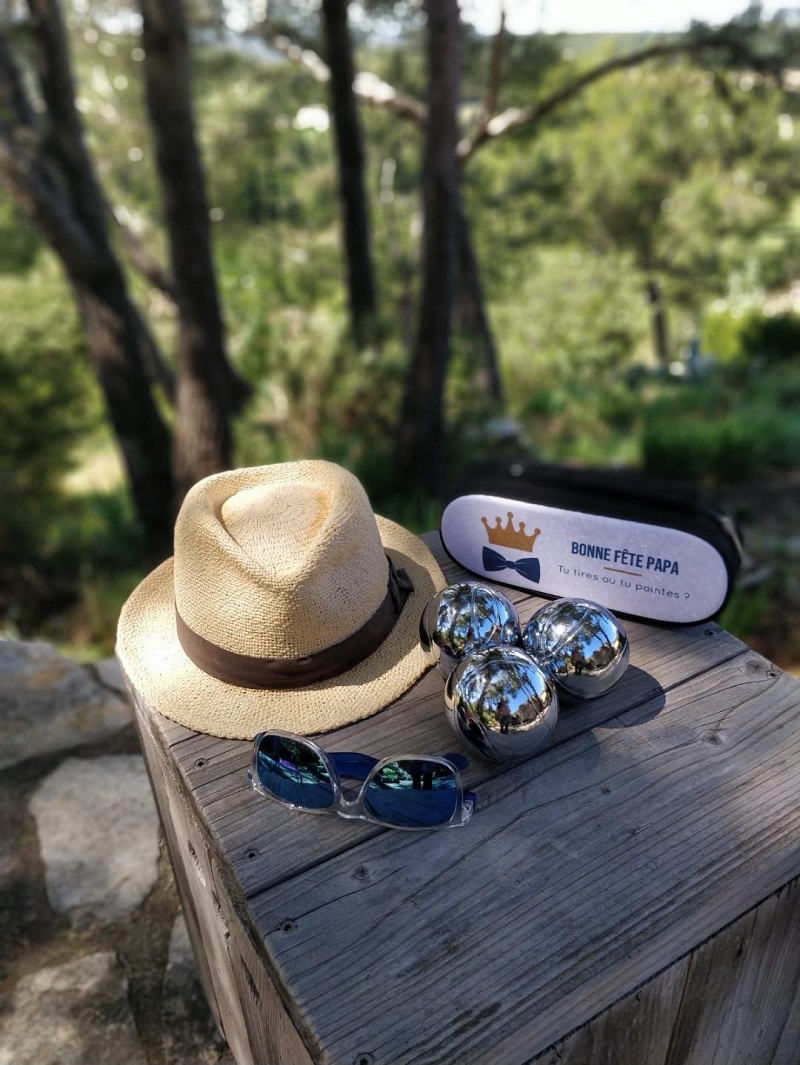 Vous les entendez les cigales et les copains qui appelle pour vous inviter à participer à une partie de pétanque ? Le papa sera trop fier de sa sacoche personnalisée ! Sur trois lignes on peut inscrire son prénom, sa devise ou un joli message d’amour !