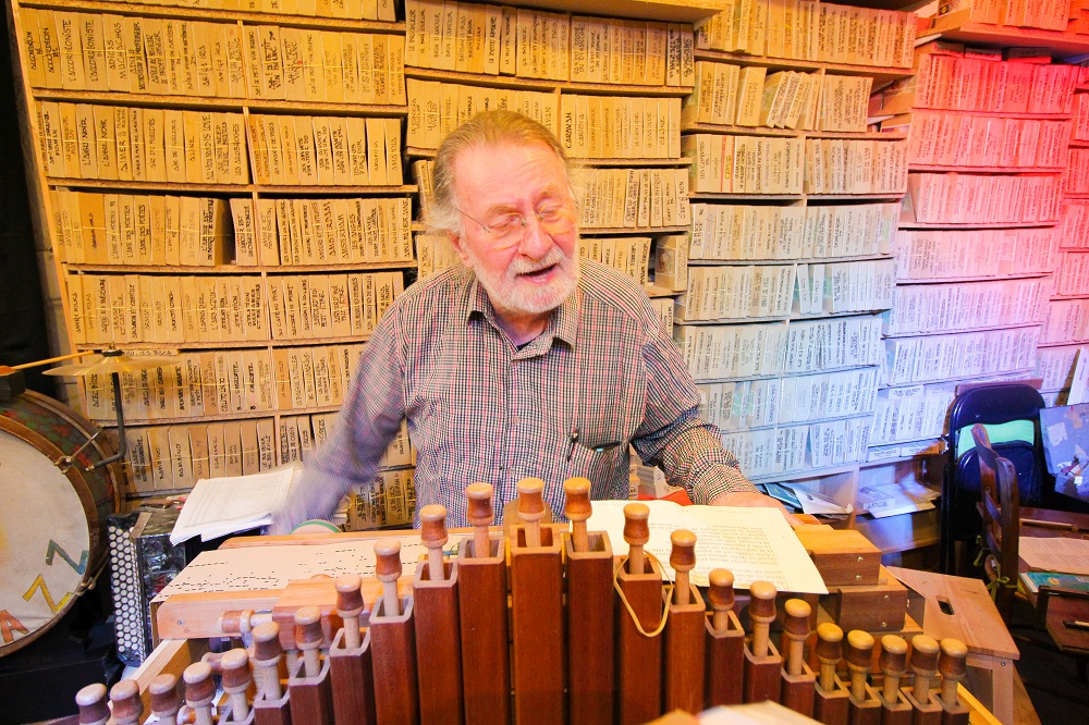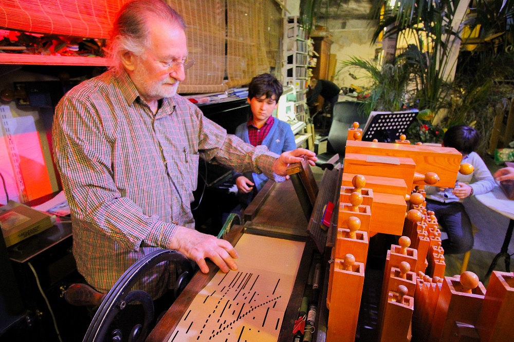 Il retranscrit la musique, arrange les morceaux et fait rêver les enfants ! Il dispose de différentes machines auxquelles il redonne vie et en une fraction de seconde la pièce se rempli d’un air entraînant, classique ou contemporain.