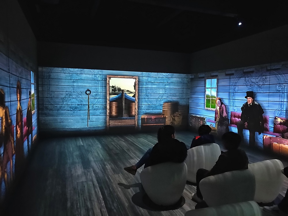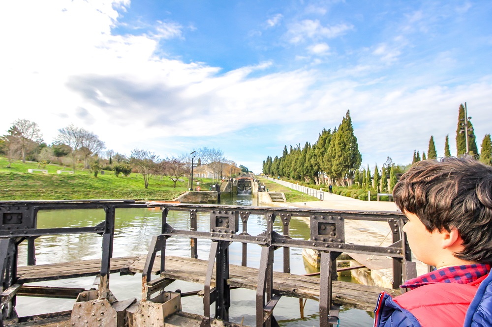Dans le grand bâtiment nommé « coche d’eau » une surprise les attend ! A l’endroit où les mariniers venaient diner en attendant que leur cargaison ne franchisse cette incroyable construction un cinéma immersif a été installé. 14 min de film ou l’on pénètre littéralement dans l’histoire du canal et de sa construction, où l’on devient tour à tour Colbert, Riquet et même Louis XIV.