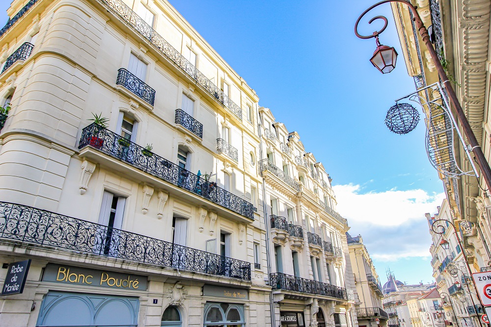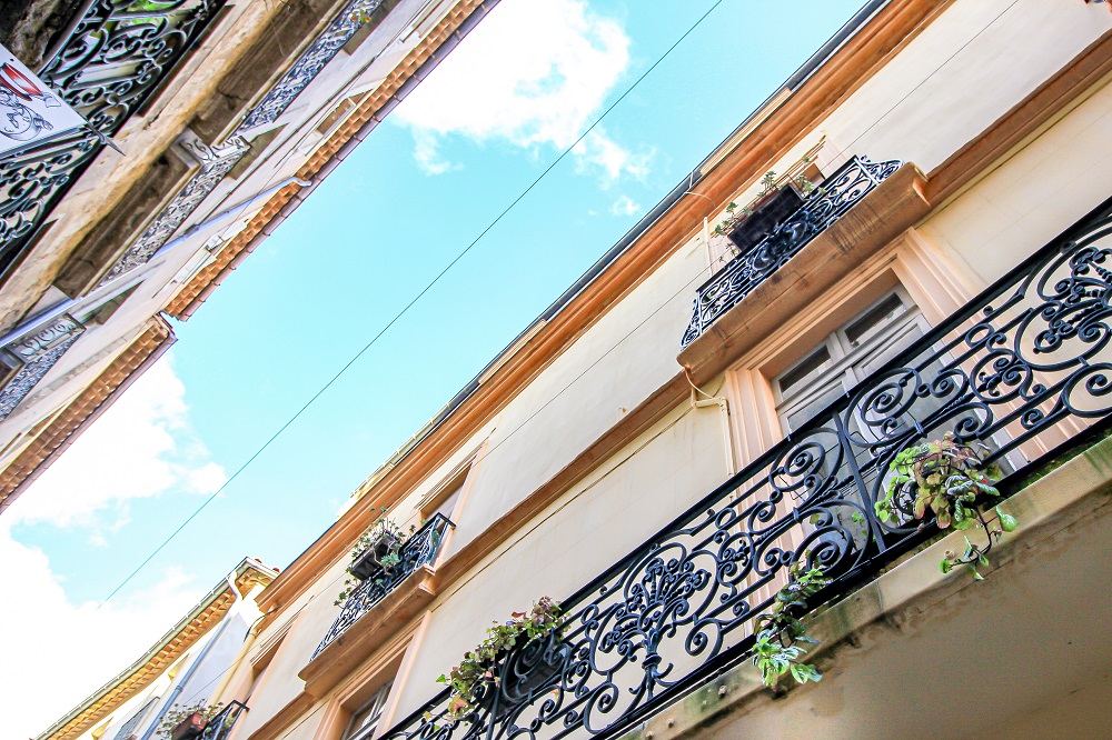 Si la ville possède un patrimoine historique et culturel très riche (les arènes, le Pont-vieux datant du 12ème siècle et les édifices religieux et de monuments historiques que nous évoquerons plus bas) mais ce qui impressionne immédiatement c’est son architecture préservée. Des immeubles clairs tranchant dans le bleu du ciel, agrémentés de balcons de fer forgé noirs.