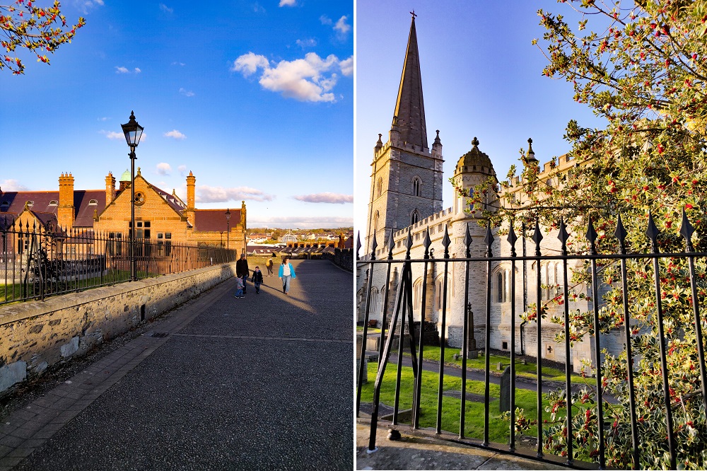 Entourée par une épaisse muraille qui encercle littéralement la ville Derry – Londonderry ne manque pas de charme. Ces remparts construits au 17e siècle constituent le seul vestige fortifié de ce type totalement intact d’Irlande. Sur plus de 1 km les familles peuvent déambuler à pied. Toute la visite du centre peut ainsi se faire en empruntant cette belle chaussée pavée.