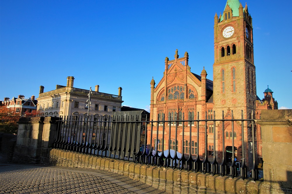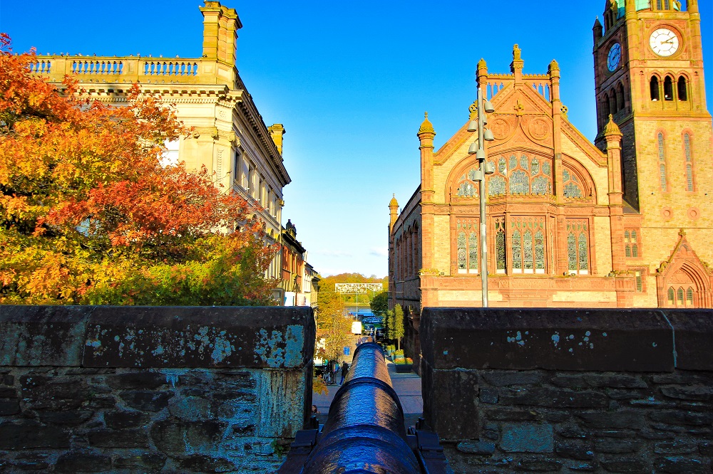 Il n’y a qu’à suivre le chemin pour découvrir le majestueux Guidhall (cette merveille néo-gothique de briques rouge construite en 1890 et qui abrite l’hôtel de ville), la fresque des Derry Girls (série Netflix), la cathédrale Saint-Colomba de Derry (première cathédrale protestante construite en Irlande), pour profiter de vues sur la ville et notamment sur le quartier du Bogside.