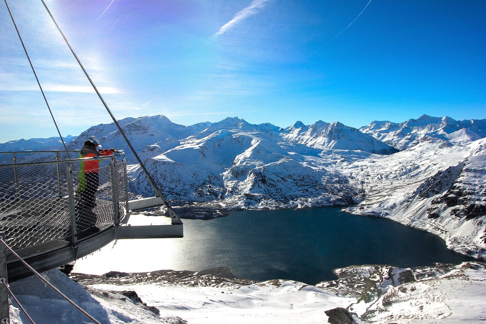Val Cenis est un domaine skiable vaste, particulièrement enneigé, très bien équipé et absolument charmant avec son col, son lac et ses points de vue à couper le souffle sur le Parc de la Vanoise. Il est possible par exemple d’accéder à une passerelle nommée la Canopée des Cimes à 2800 mètres d’altitude pour contempler les Alpes et le Piémont.