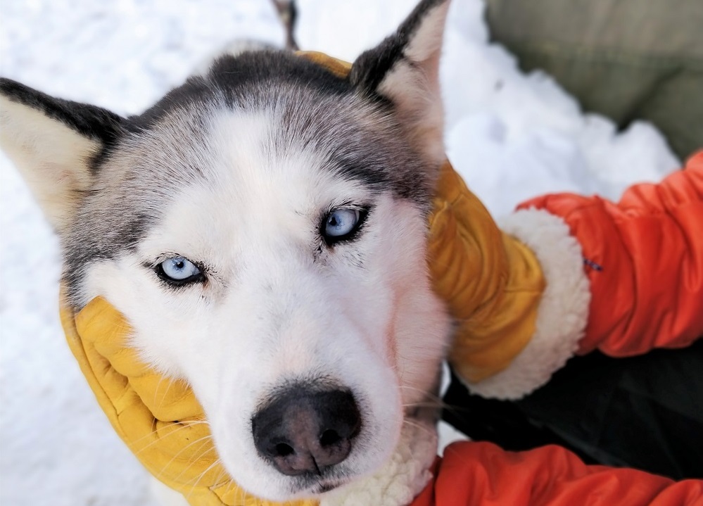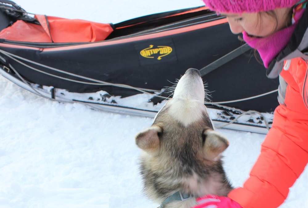 2) On rencontre et caresse des chiens de traîneaux