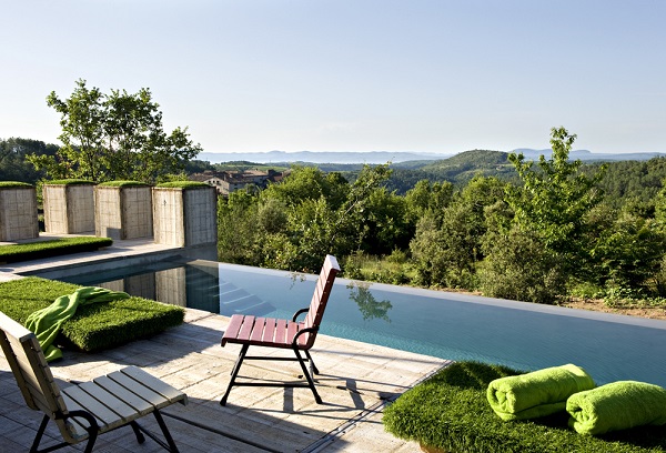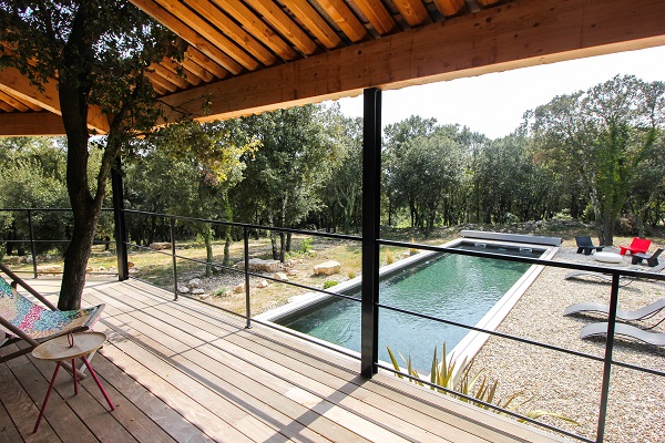Une maison contemporaine avec terrasses privatives ouvertes sur les monts de l’Ardèche et une magnifique piscine à débordement décorée par Eric et Muriel les propriétaires du 35 mai.