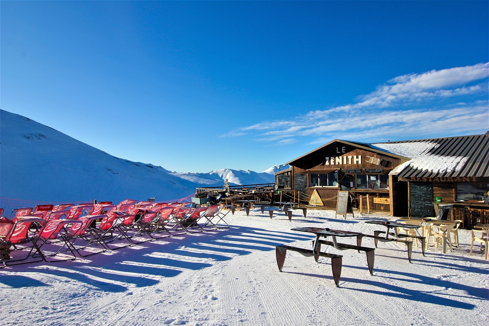C’est à 2530m d’altitude, à côté de l’arrivée du télé-siège de Pousterle que le restaurant le Zénith offre une terasse au soleil, face à la vue. Les piétons peuvent y monter également pour profiter du panorama.