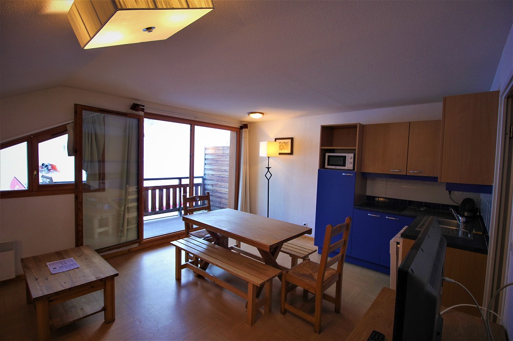 Les appartements sont très bien équipés (baignoire/douche, de nombreux rangements, lave vaisselle, micro-ondes ) et chacun dispose d’un balcon avec de grandes baies vitrées et vue sur les pistes ou sur l’intérieur de la station. L’insonorisation est bonne et la qualité de la literie aussi.