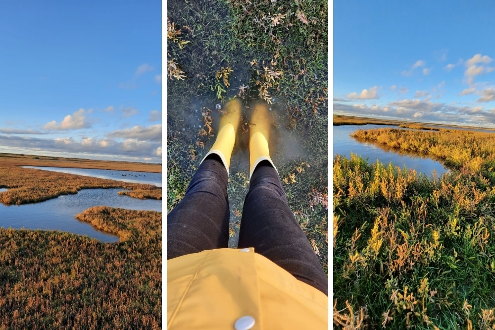 On retrouve son guide devant l’entrée principale pieds nus ou en chaussons néoprène très bien maintenus. Tous les autres types de chaussures sont à prescrire car elles finiront dans la vase sinon. Même en octobre en se couvrant bien le haut du corps on arrive à passer trois heures pieds nus dans l’eau et la boue.