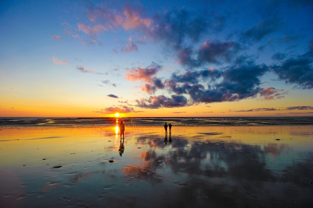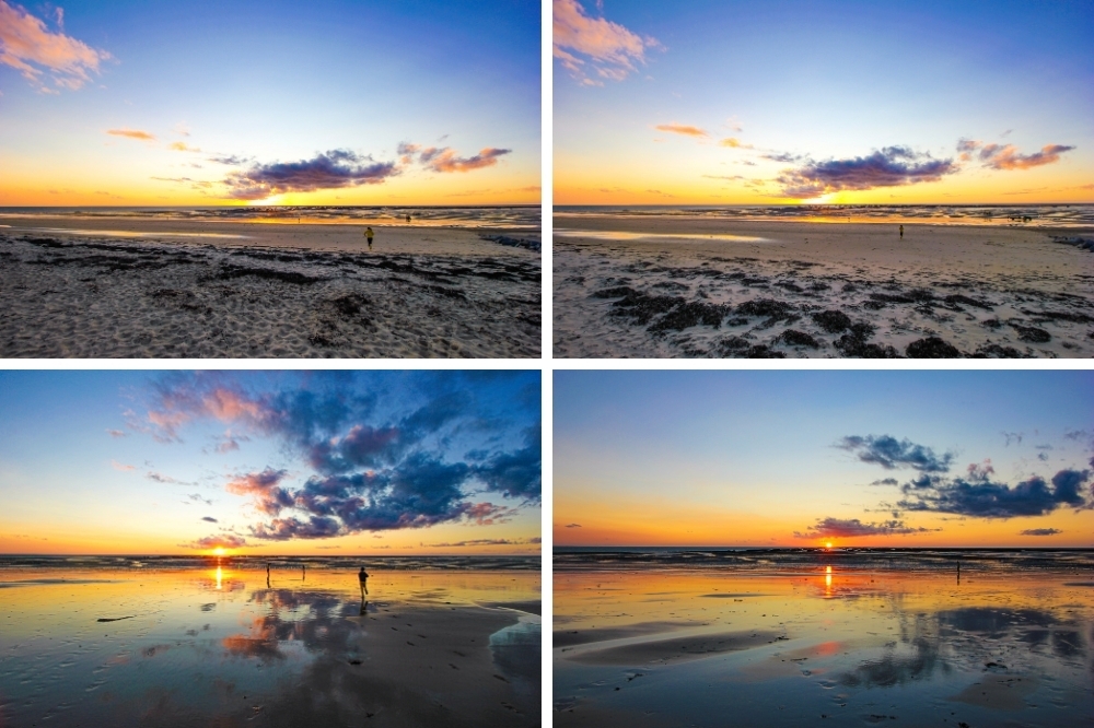 Sur la plage nous avons eu le droit à un spectacle incroyable presque surréaliste. Le soleil en se couchant embrassait l’horizon pendant que les enfants jouaient dans ses derniers rayons.