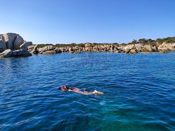 Dans ce coin comme presque partout en Corse il faut choisir entre une plage accessible en voiture et souvent payante et une jolie crique sauvage que l’on rejoint en parcourant un chemin de piste pas franchement praticable. Sauf qu’au camping l’Avéna la crique est à 300 mètre ! Eau chaude (23 à 25 degrés) , cristalline aux dégradés de bleus parfaite pour le snorkeling.