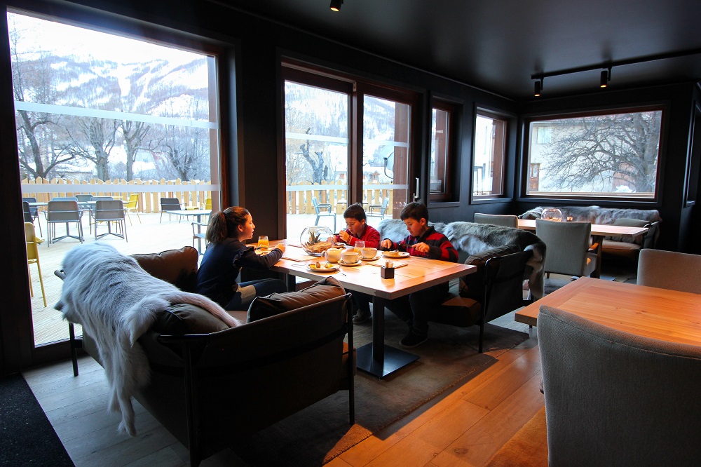 Nous avons eu un véritable coup de cœur pour l’hôtel le Monetier avec sa décoration de bois brut et son ambiance chaleureuse et totalement contemporaine. S’il s’agit d’un hôtel de centre village, la vue sur les pistes et le glacier depuis les chambres est parfaite, le restaurant le Sabatio est design, des chambres familiales sont prévues et le goûter après ski est au top. Sachez que le buffet de patisseries est à la disposition clients de l’hôtel mais aussi des extérieurs. La formule à 10€ comprend des pâtisseries à volonté et boisson chaude ou jus.
